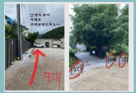 2대 이상인 경우,서림연가 입구 쪽에 주차가능합니다. (길이 없는 끝집)